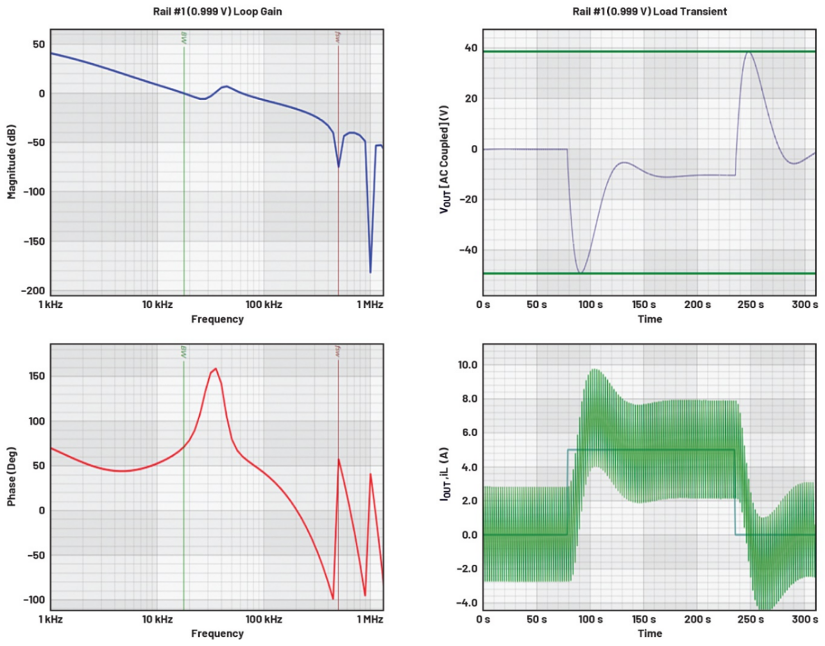 圖9.圖6中電源的環路波特圖和負載瞬態響應。