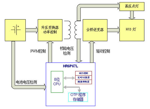 基于HR6P67L芯片的HID車燈控制器已經(jīng)在汽車氙氣前照燈市場上得到廣泛應(yīng)用。
