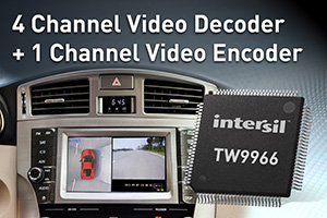 TW9966是一款面向車用360度全景環(huán)視影像應(yīng)用,且包含一個(gè)內(nèi)置模擬視頻編碼器的四通道模擬視頻解碼器。基于市場(chǎng)領(lǐng)先的Intersil多通道視頻監(jiān)控技術(shù),TW9966提供集成于一個(gè)芯片的四個(gè)模擬視頻解碼器和一個(gè)模擬視頻編碼器,以取代五個(gè)分立元件,幫助簡(jiǎn)化設(shè)計(jì)和節(jié)省電路板空間。TW9966專為汽車應(yīng)用進(jìn)行了優(yōu)化,提供業(yè)內(nèi)最佳的模擬解碼性能,可為駕駛員產(chǎn)生具有卓越畫面質(zhì)量的360度全景環(huán)視影像。