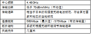 物理層傳輸速率是560Mbps,最大的數據傳輸量是375Mbps。傳輸時長一小時的電視節目(例如:格式為MPEG4,大小為170MB)僅需幾秒鐘。能夠根據無線媒體介質的質量調節適當的數據傳輸速率。如果傳輸環境的條件減弱,TransferJetTM也可以通過自動調節數據傳輸速率維持最高可能的無線連接。因為TransferJetTM是一個能發射非常低功率無線電波的近距離無線系統,所以它實質上不會對其它無線系統產生干擾,即使多人同時在附近區域使用TransferJetTM也不會影響其性能(無干擾)。