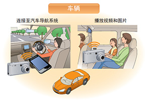 - 車輛:連接至汽車導航系統、播放視頻和圖片