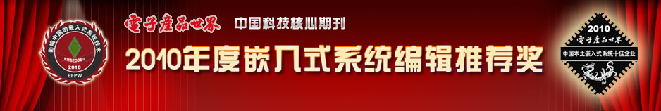 嵌入式系統(tǒng)編輯推薦獎(jiǎng)評(píng)選是中國(guó)科技核心期刊《電子產(chǎn)品世界》雜志社(簡(jiǎn)稱(chēng)EEPW)每年舉辦的重要活動(dòng)之一,開(kāi)始于2004年,今年已是第7屆。在中國(guó)半導(dǎo)體行業(yè)協(xié)會(huì)集成電路設(shè)計(jì)分會(huì)、中國(guó)計(jì)算機(jī)學(xué)會(huì)嵌入式系統(tǒng)專(zhuān)業(yè)委員會(huì)(微機(jī)專(zhuān)業(yè)委員會(huì)) 及國(guó)內(nèi)外廠商的大力支持下,評(píng)選活動(dòng)已頗具規(guī)模和知名度,是EEPW的品牌活動(dòng)之一。