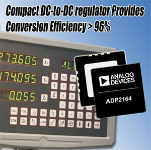 ADP2164是ADI推出的一款高集成度新型 DC-DC 調(diào)節(jié)器,其功率轉換效率大于96%,可提高系統(tǒng)電源效率并降低熱量耗損。與其它5 V 調(diào)節(jié)器不同,ADP2164提供2.7 V 至6.5 V 輸入電源電壓范圍,輸出范圍低至0.6 V,可提供額外的安全裕量。內(nèi)置低導通電阻開關FET,不僅能夠實現(xiàn)最高效率,而且減少了電路板空間。ADP2164針對多電源軌、終端負載應用而設計,適合從通信基礎設施到工業(yè)設備的各種要求小尺寸、快速瞬態(tài)性能和高精度電壓調(diào)節(jié)的應用。
