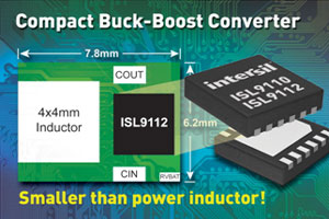 ISL9112可以將低于或高于輸出電壓的輸入電壓進行調節,自動的工作在升壓或者降壓模式,提供穩定的輸出電壓來幫助簡化設計。該穩壓器只需要一個電感和兩個電容,從而將外部元件數量降到最少。其在升壓和降壓模式轉換期間的輸出電壓瞬態偏差被控制在業內最低水平,其自動升降壓模式切換功能也使設計師能夠靈活地選擇最佳輸出電壓。ISL9112的2.5MHz開關頻率也是同類升壓-降壓穩壓器中的最高頻率水平,進一步將外部元件尺寸控制到最小程度。