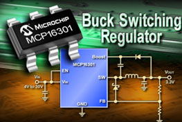 MCP16301提供了一個對12V至24V DC供電電壓進行降壓的高效、緊湊的解決方案,適用于各種應用中的PIC?單片機和其他低電壓器件。高速峰值電流模式控制可以快速應對電源應用中遇到的突如其來的輸入電壓和負載瞬態。MCP16301還具有出色的線路和負載調節功能,而集成的控制回路補償和斜率補償使穩定轉換器控制系統這一復雜任務變得簡單而可靠。此外,與低壓降(LDO)穩壓器相比,MCP16301還降低了電力需求和應用內的發熱量,以及相應的冷卻要求。這些特點可以延長電池壽命,更容易滿足低功耗要求。