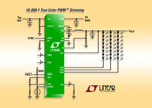凌力爾特推出 60V、1MHz 降壓型 DC/DC 轉(zhuǎn)換器 LT3596,該器件設(shè)計(jì)作為恒定電流 LED 驅(qū)動(dòng)器運(yùn)作,以驅(qū)動(dòng)多達(dá) 30 個(gè) LED。就 48V 輸入而言,LT3596 可驅(qū)動(dòng)多達(dá) 3 串各含 10 個(gè) 100mA 串聯(lián) LED 的 LED 串,可提供超過 90% 的效率。LT3596 的多通道能力使其非常適用于大型 LED 廣告牌以及工業(yè)和醫(yī)療顯示器。其 6V 至 60V 的輸入電壓范圍使其非常適用于汽車和工業(yè)應(yīng)用。LT3596 提供 ±1.5% 的 LED 電流匹配,以確保一致的顯示器亮度,而且其真正色彩 PWM (True Color PWM) 調(diào)光提供高達(dá) 10,000:1 的調(diào)光比。以 200kHz 至 1MHz 的可編程固定頻率工作以及電流模式架構(gòu)確保在寬電源和輸出電壓范圍內(nèi)穩(wěn)定工作,從而最大限度地減小了外部組件的尺寸。此外,開關(guān)頻率可同步至一個(gè)外部時(shí)鐘。LT3596 的耐熱增強(qiáng)型 5mm x 8mm QFN 封裝為 LED 背光照明應(yīng)用提供了占板面積高度緊湊的解決方案。